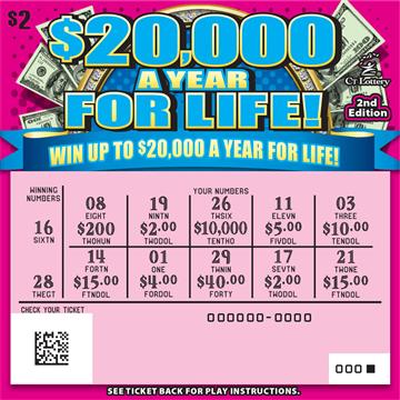 Match any of YOUR NUMBERS to any of the WINNING NUMBERS, win prize shown below your matching number(s). Reveal a "STAR" symbol, win prize shown below that symbol. Reveal a "WIN FOR LIFE" symbol, win $20,000 A YEAR FOR LIFE!